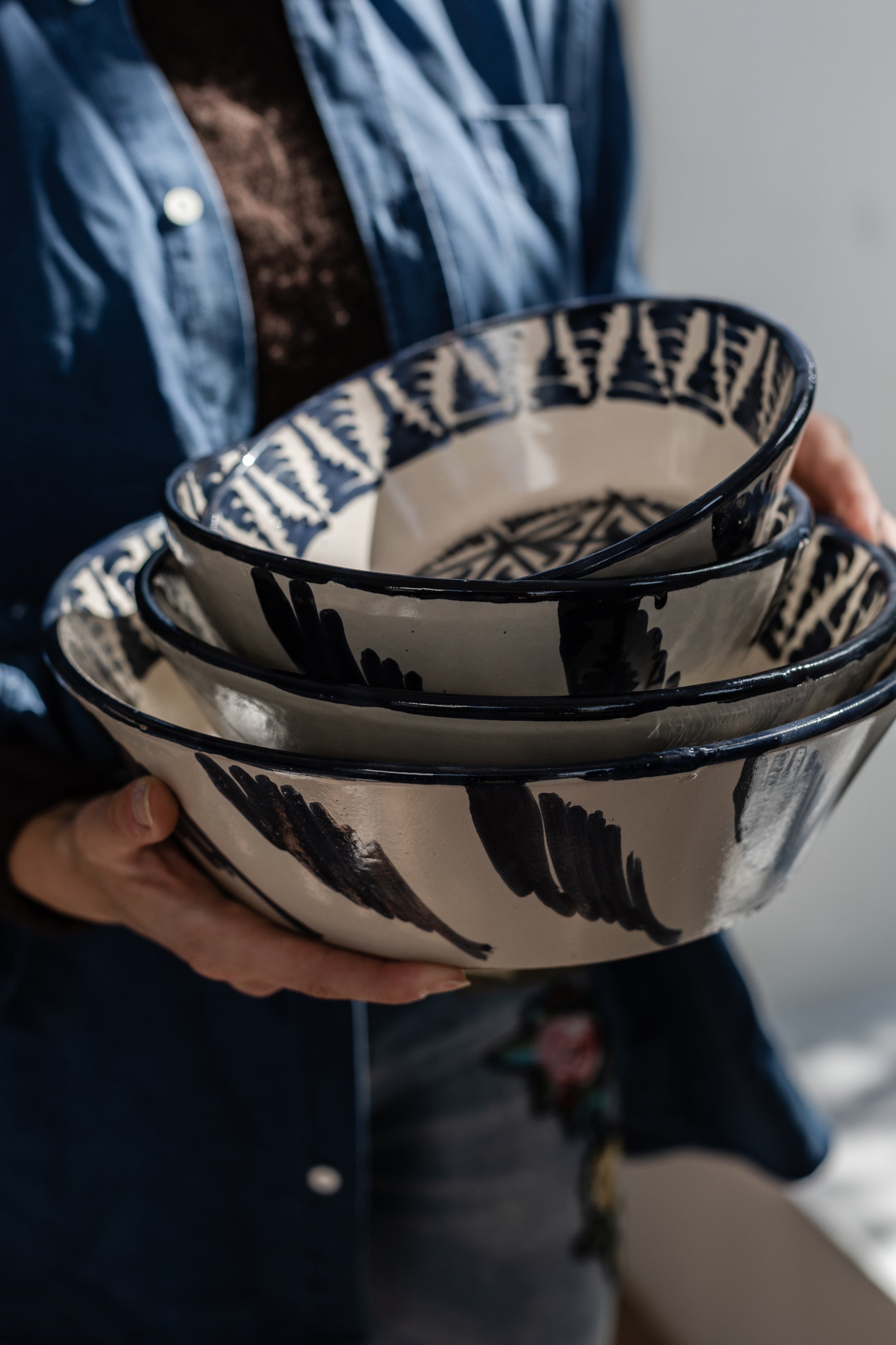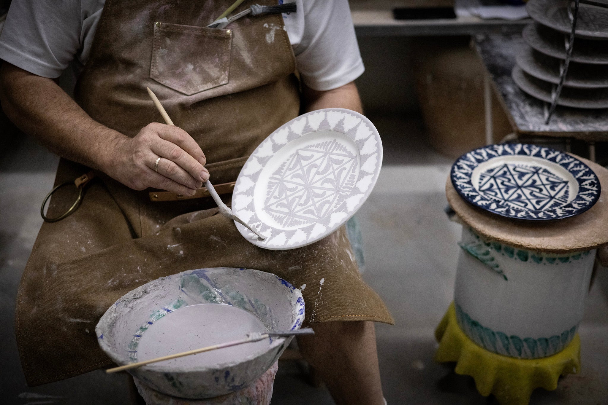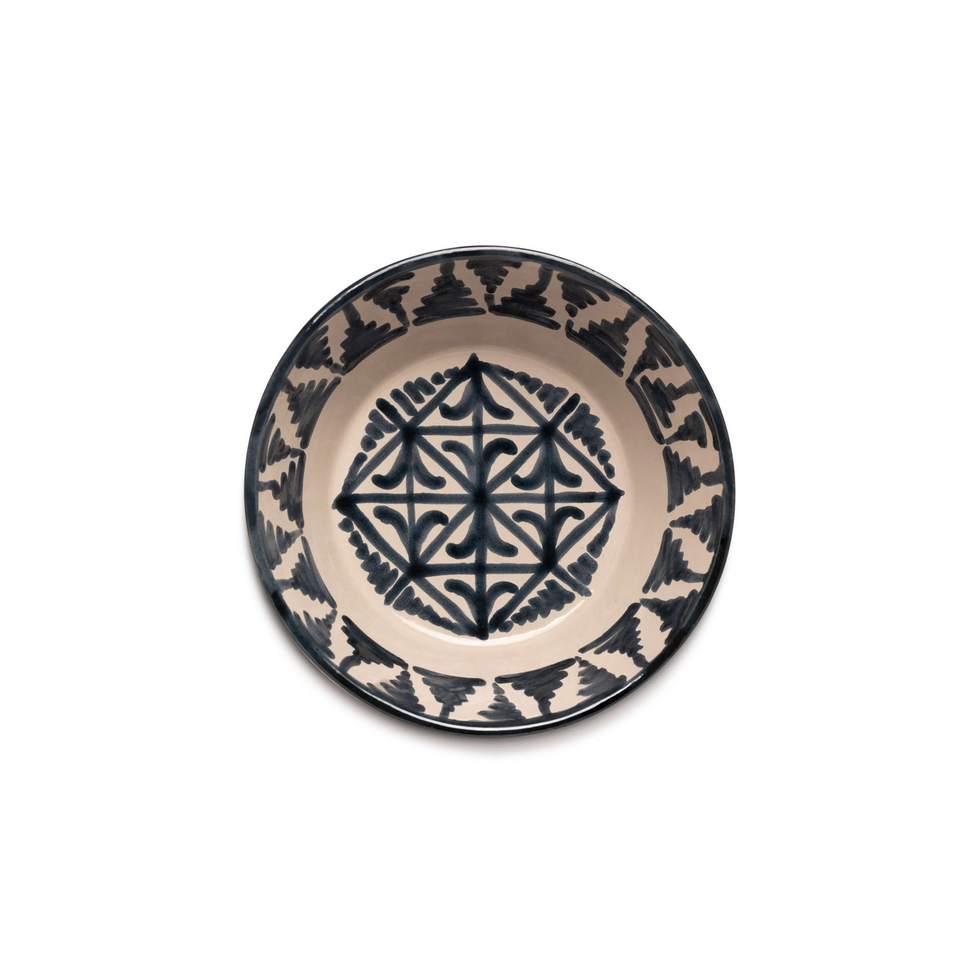 Each plate and bowl is hand decorated with intricate designs before the final firing, resulting in individual works of art with strong references to the cultural heritage of traditional Granadan ceramics.