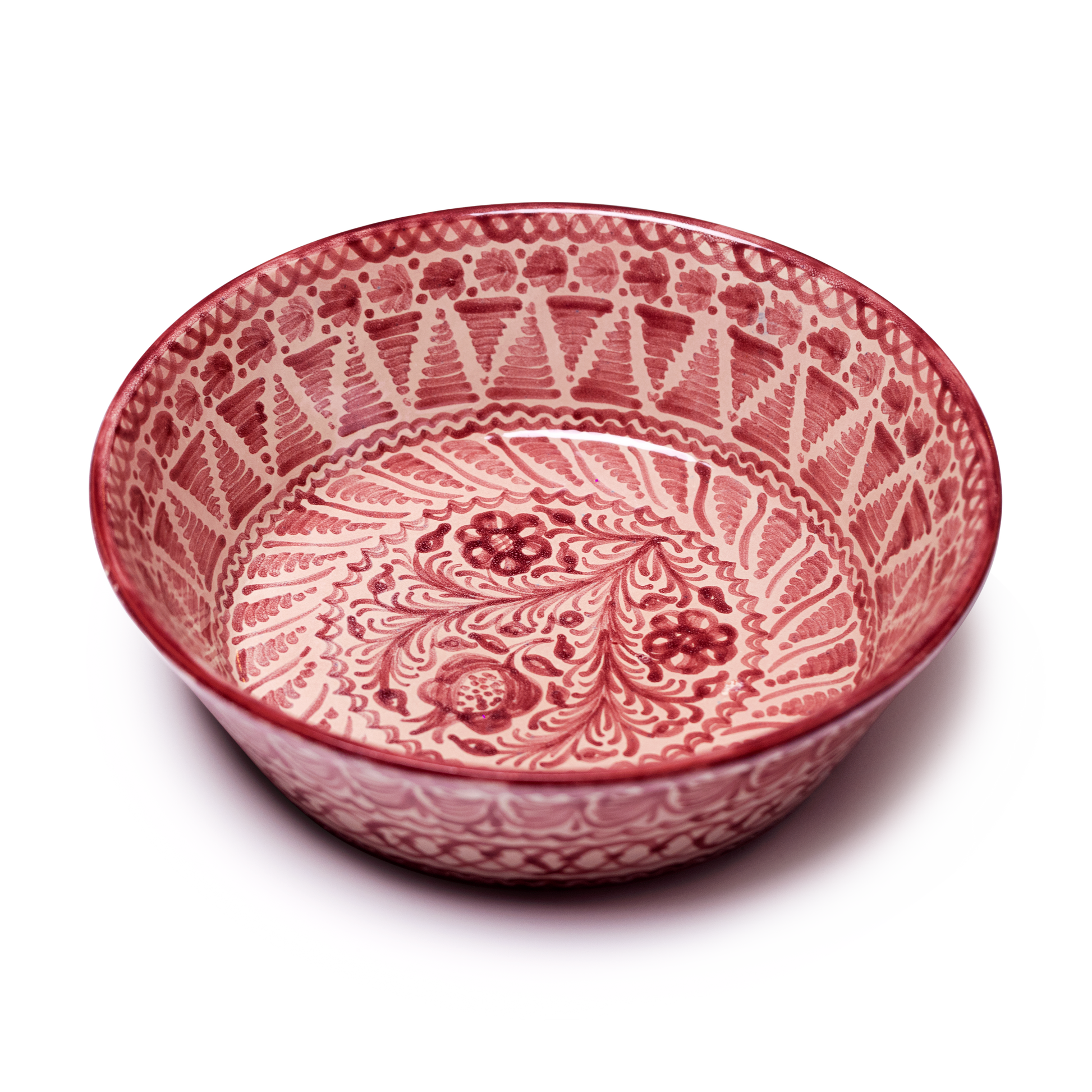 Each plate and bowl is hand decorated with intricate designs before the final firing, resulting in individual works of art with strong references to the cultural heritage of traditional Granadan ceramics.